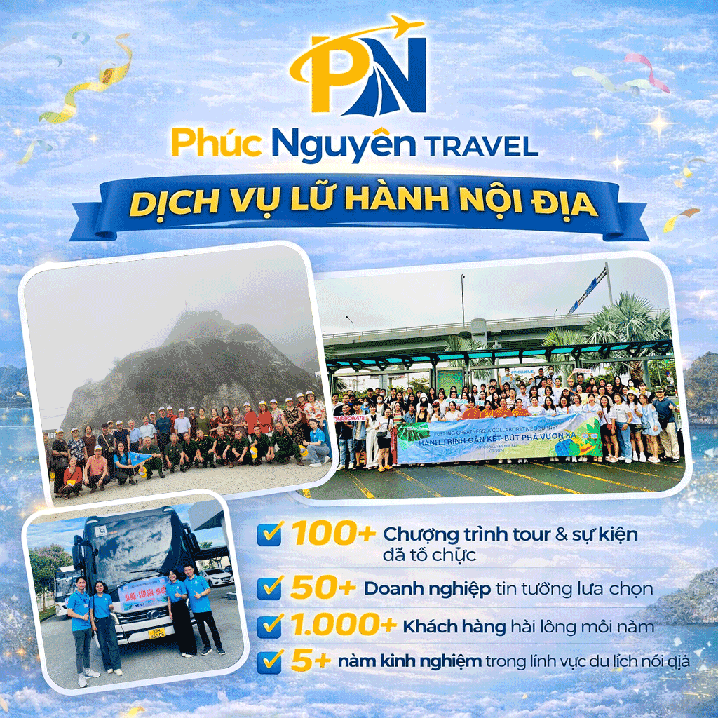 Chúng tôi tự hào khi được đồng hành và hợp tác cùng nhiều doanh nghiệp, tập đoàn uy tín trên toàn quốc trong việc tổ chức các chương trình du lịch, hội thảo và team building chuyên nghiệp. Tiêu biểu có thể kể đến như: Công ty TNHH Matsuo Industries Việt Nam, Tập đoàn Quế Lâm, Công ty TNHH Fit Active Việt Nam Precision, Công ty Cổ phần Xây dựng và Thương mại Vĩnh Sơn (Chi nhánh Hà Nam, Sông Lô), Công ty Cổ phần Tập đoàn CNCTech, Công ty Cổ phần X20, Hợp tác xã Công nghiệp Thực phẩm Sóc Sơn, Ngân hàng TMCP Việt Nam Thịnh Vượng (VPBank)… Sự tin tưởng của các đối tác chính là minh chứng rõ ràng cho chất lượng dịch vụ, sự tận tâm và uy tín mà Phúc Nguyên Travel luôn không ngừng xây dựng và phát triển. Trong thời gian tới, chúng tôi cam kết tiếp tục nâng cao trải nghiệm, mang đến những hành trình ý nghĩa và góp phần gắn kết bền vững cho mỗi doanh nghiệp.
